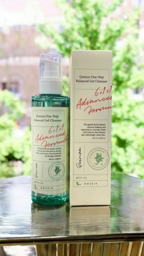 The AXIS-Y Quinoa One Step Balanced Gel Cleanser is a gentle, hydrating cleanser designed for sensitive and acne-prone skinIt aims to remove makeup, excess oil, and impurities in one step while maintaining the skin's natural pH balance. The cleanser features quinoa extract and six other natural ingredients to nourish, soothe, and hydrate the skin.