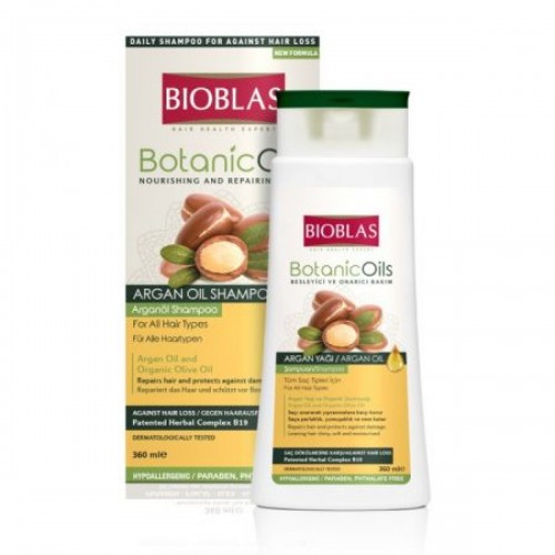 Bioblas Argan Oil Shampoo 360ml is a nourishing shampoo enriched with the beneficial properties of argan oil. Known for its moisturizing and conditioning effects, this shampoo helps to deeply hydrate and repair dry or damaged hair. The rich nutrients in argan oil work to restore hair's natural shine, softness, and smoothness, while also protecting it from further damage. Ideal for individuals with frizzy, dry, or chemically-treated hair, this shampoo helps to strengthen the hair, reduce split ends, and promote overall hair health. It leaves the hair feeling rejuvenated, silky, and manageable with every wash.