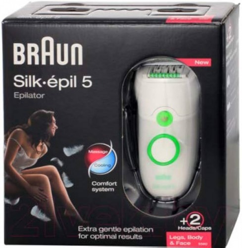 The Braun Silk-épil 5-5580 is a versatile epilator designed for efficient and gentle hair removal on the legs, body, and face. Equipped with close-grip technology, it removes hair as short as 0.5mm for smooth, long-lasting results. The soft lift tips lift and remove flat-lying hairs, while the massaging rollers help reduce discomfort and enhance skin smoothness. This wet & dry epilator is fully waterproof, making it perfect for use in the shower or bath. With two speed settings and multiple attachments, including a facial cap and shaver head, it offers tailored hair removal solutions for different areas of the body.