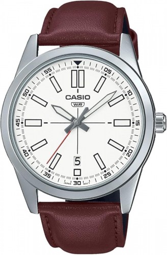 Casio MTP-VD02L-7E Dress Leather Band White Dial 3-Hand Analog Watch