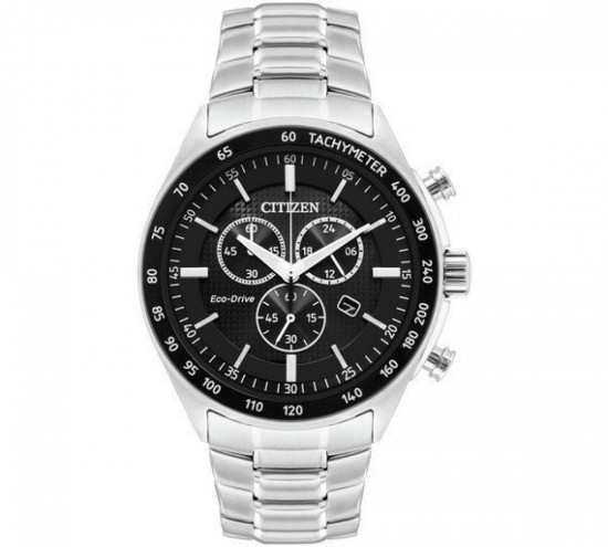 Citizen Eco-Drive Chronograph Black Dial Silver Steel Strap Watch for Men