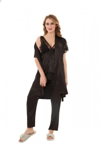 Flourish Satin Solid 3-Piece Nightdress Set - 6103