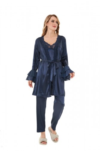 - 3-Piece Set: Includes a nightdress, robe, and matching inner slip.