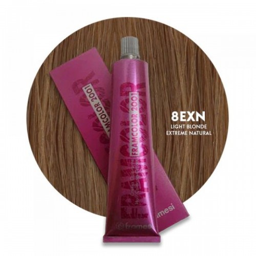 Framesi Framcolor 2001 Hair Color Cream 60ml - 8EXN Light Blonde Extreme Natural delivers a luminous, natural light blonde shade with enhanced depth and radiance. This permanent hair color offers superior gray coverage, exceptional color vibrancy, and a nourishing formula that helps maintain hair's softness and shine during and after the coloring process.