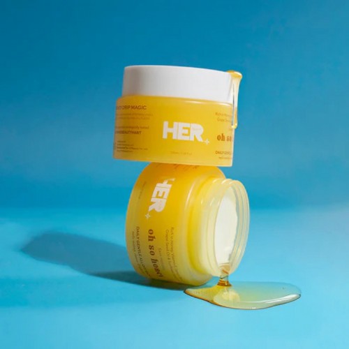 The Her Beauty Oh So Honey Gentle All-Off Balm 100ml is a cleansing balm that removes makeup, leaving the skin nourished. It contains honey, sunflower seed oil, and Vitamin E, and transforms from a balm to a silky oil, then to a milky cleanser.
