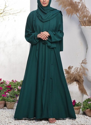 Hijab Ul Hareem - Double Georgette Front Open Abaya Emerald 0116-R-704