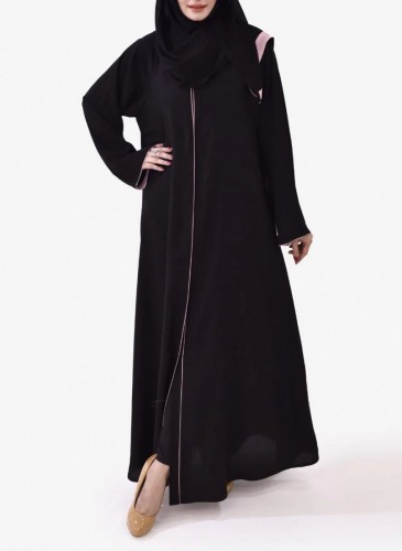 The Hijab Ul Hareem - Pipin Style Black Abaya 0116-R offers the perfect blend of modern detailing and timeless elegance, making it a must-have addition to your modest wardrobe.