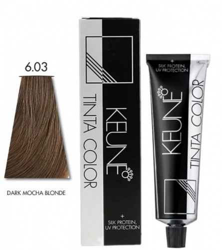 Keune Tinta Color 6.03 - Dark Mocha Blonde (60ml) is a rich, warm blonde shade with a mocha undertone that creates a luxurious, deep blonde color with subtle brown and golden hints.