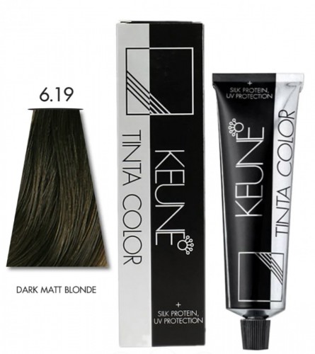 Keune Tinta Color 6.19 Dark Matt Blonde is a cool, muted shade of dark blonde that combines neutral tones with a matt finish. Ideal for those looking for a sophisticated, understated blonde shade with a cooler tone.