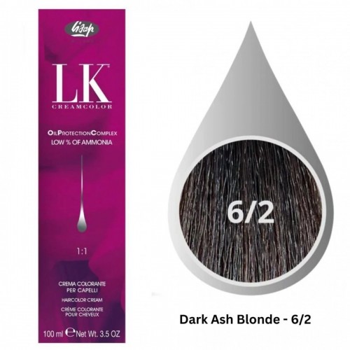 Achieve a refined, cool-toned look with LK Cream Color 6/2 Dark Ash Blonde. Its professional-quality formula ensures consistent, vibrant color while nourishing your hair for a healthy, beautiful finish.