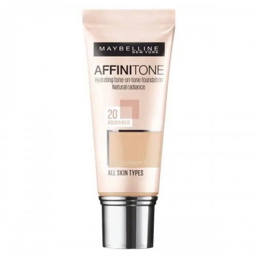 The Maybelline Affinitone Foundation No. 20 Golden Rose is a liquid foundation that provides a natural, radiant finish while offering buildable coverage to smooth and even out skin tone. Ideal for all skin types, this foundation helps to create a flawless complexion while allowing your skin to breathe.