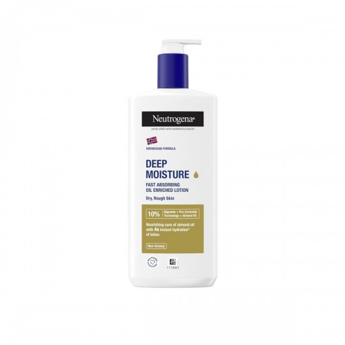 Neutrogena Deep Moisture Body Lotion (400ml) is a fast-absorbing, non-greasy lotion designed to deeply hydrate dry and sensitive skin. It's formulated with glycerin and other nourishing ingredients that penetrate deep into the skin, providing 48-hour moisture and leaving skin feeling soft and smooth. The lotion is dermatologist-tested and suitable for daily use.