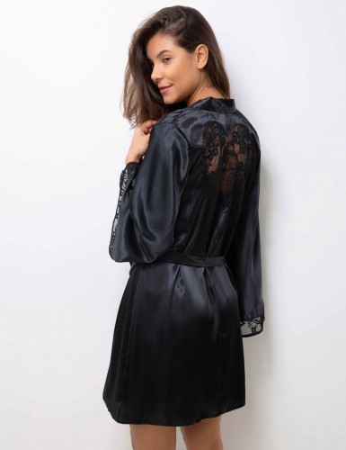 Elegant Design: Chemise with delicate straps and a matching robe.