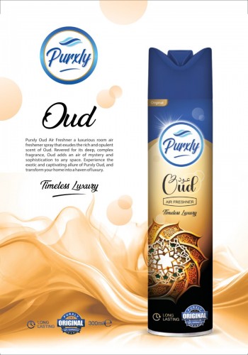 The Purxly Oud Room Air Freshener, 300ml, brings a luxurious and calming scent to your space, making it perfect for creating a welcoming and serene environment.