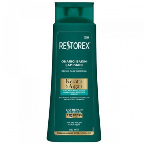 Restorex Keratin & Argan Care Shampoo 500ml is a nourishing shampoo formulated with keratin and argan oil, designed to restore and strengthen hair. This shampoo helps repair damaged hair, adding shine and softness while providing deep hydration. The keratin works to smooth and strengthen each hair strand, reducing frizz and breakage. Argan oil, known for its moisturizing properties, helps nourish and condition the hair, leaving it feeling soft and healthy. Ideal for dry, damaged, or over-processed hair, this shampoo provides long-lasting moisture and protection for a smoother, more manageable hair texture.