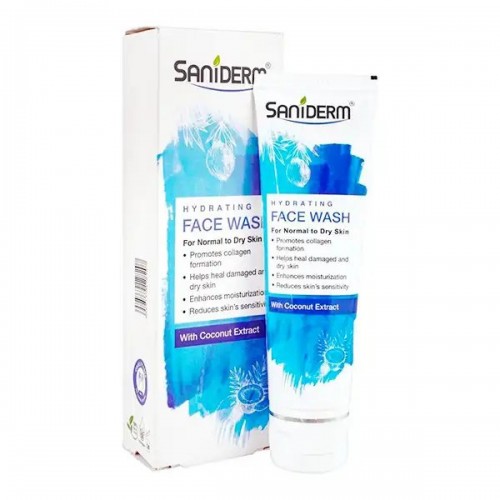 Saniderm Hydrating Face Wash with Coconut Extract (100gm) is a gentle yet effective cleanser formulated to hydrate and cleanse the skin without stripping it of its natural moisture. Ideal for dry and sensitive skin, it provides nourishment while removing impurities.