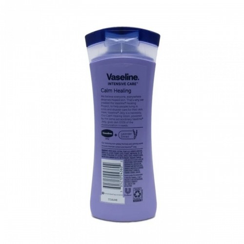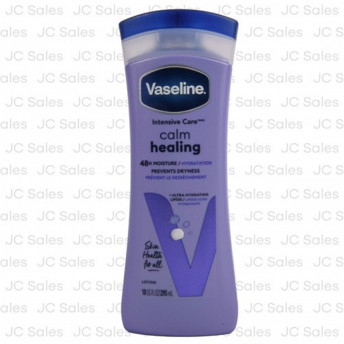 Vaseline Intensive Care Calm Healing Dry Skin Hydrating - 295ml, written in bullet points without web search: Brand: Vaseline Product Type: Intensive care body lotion Purpose: Specially designed to calm and heal dry, irritated skin Key Benefits: Provides deep hydration for dry and sensitive skin Helps restore and strengthen the skin's moisture barrier Soothes discomfort from dryness and leaves skin feeling calm and nourished Formula: Enriched with moisturizing agents and healing ingredients Hypoallergenic and non-comedogenic Clinically proven to provide long-lasting moisture Texture: Smooth, fast-absorbing, and non-greasy Skin Type Compatibility: Ideal for dry, itchy, or sensitive skin Fragrance: Light and subtle, suitable for sensitive users Usage: Can be used daily for effective hydration and skin repair Packaging: Comes in a 295ml bottle with an easy-to-use pump or flip-top cap