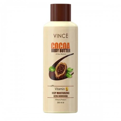 The Vince Cocoa Body Butter (300ml) is a rich, nourishing body cream infused with cocoa butter, known for its deep moisturizing and skin-smoothing properties. It is designed to hydrate and restore dry, rough skin, leaving it soft, supple, and visibly smooth.