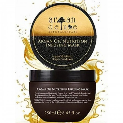 Argan Deluxe Professional Argan Oil Nutrition Infusing Mask is a premium, deep-conditioning hair mask designed to nourish, hydrate, and restore the natural vitality of dry, damaged, or color-treated hair. Enriched with luxurious argan oil, this mask helps to infuse the hair with essential nutrients, promoting healthier, shinier, and more manageable hair. Ideal for those with dull or brittle hair, it revitalizes and strengthens hair, giving it a smooth and silky finish.