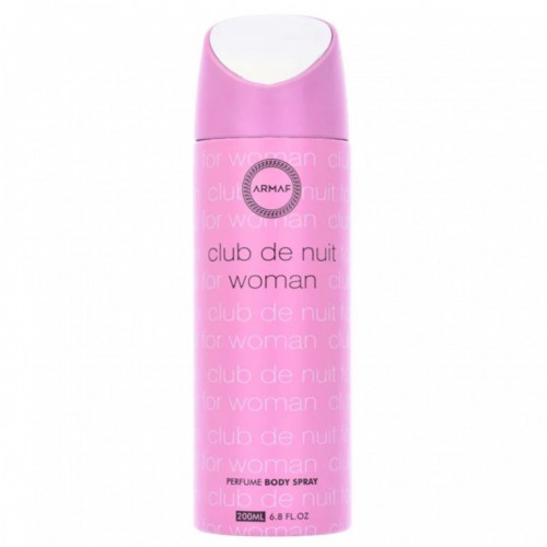 maf Club de Nuit Woman is a floral fruity fragrance for women, offering a long-lasting, sparkling freshness. The top notes feature orange, bergamot, grapefruit, and peach, while the middle notes include rose, jasmine, and lychee. It's created by the House of Sterling. The body spray is available in a 200ml bottle.