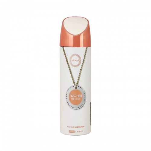 Armaf Tag Her Body Spray for women is a floriental fragrance in a 200ml bottle, known for its sophisticated and versatile blend of floral, fruity, and spicy notes, with a rich base of caramel and amber. It features top notes of neroli, pink pepper, and bergamot, heart notes of honeysuckle, iris, jasmine, rose, and orange blossom, and a gourmand base including caramel. The fragrance is designed to be long-lasting, develop over time, and is recommended for both daily wear and special occasions, creating a warm, inviting, and luxurious scent.