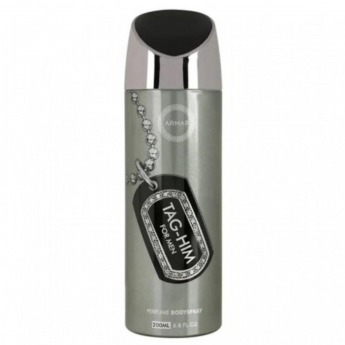 Armaf Tag Him Body Spray is a 200ml Woody Spicy fragrance for men featuring a blend of fresh citrus top notes like Grapefruit, Lemon, and Bergamot, a heart of spices and lavender including Ginger, Mint, Lavender, and Nutmeg, and a warm, masculine base of Vetiver, Sandalwood, Patchouli, and Cedar. It offers a dynamic, masculine, and sophisticated scent, with a long-lasting formula suitable for daily wear, work, and evening outings.