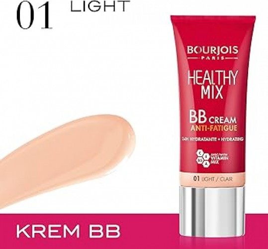 Bourjois Healthy Mix BB Cream Anti-Fatigue in shade 01 Light (30ml) is a refreshing, multi-tasking beauty balm designed to hydrate, even out skin tone, and provide a radiant, healthy glow. This BB cream offers a lightweight, breathable formula that helps reduce the appearance of fatigue, leaving your skin looking refreshed and luminous. Infused with a blend of fruit therapy ingredients like apricot, melon, and apple, it nourishes and revitalizes the skin, while offering a natural, smooth finish. The 01 Light shade is perfect for fair skin tones, providing light coverage that enhances your complexion without feeling heavy. Ideal for everyday wear, it balances hydration and coverage, blurring imperfections and creating a radiant, dewy appearance for a fresh, awake look throughout the day.
