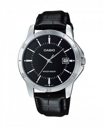 The Casio MTP-V004L-1A is a sleek and timeless timepiece designed for Mens who appreciate a refined and versatile style. Featuring a classic black dial with white hour markers and hands, this watch offers excellent readability and a clean, modern look. The genuine leather strap ensures comfort and durability, providing a sophisticated finish to the watch. Powered by quartz movement, this watch guarantees precise and reliable timekeeping, making it perfect for everyday wear or special occasions.