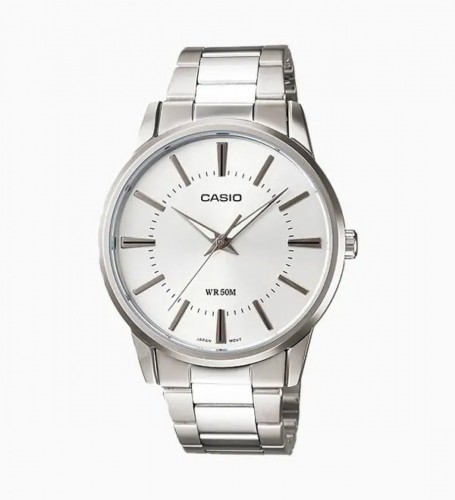 The Casio MTP-1303D-7A is a stylish and versatile timepiece designed for men who appreciate a classic yet modern look. Featuring a clean white dial with black markers and hands, this watch offers a timeless design that pairs well with any outfit. Its stainless steel case and bracelet provide durability and a polished finish, making it perfect for both casual and formal occasions.