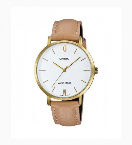 Casio LTP-VT01GL-7B Women’s Minimalistic Gold Tone Brown Leather Band Gold Dial 3-Hand Analog Watch