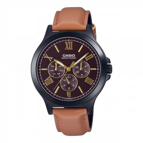 The Casio MTP-V300BL-5A is a versatile and stylish timepiece designed for Mens who value a classic, refined look. Featuring a rich brown leather strap and a warm, contrasting black dial, this watch offers excellent readability and a sophisticated aesthetic. The watch is powered by quartz movement, ensuring precise timekeeping. With a durable stainless steel case, it’s built to withstand daily wear while maintaining its elegant appearance. The watch is perfect for both casual and formal occasions, offering versatility and reliability in one sleek package.