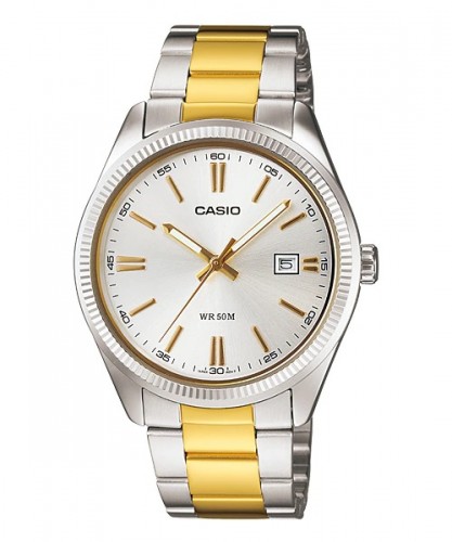 The Casio LTP-1302SG-7AVDF is a stylish and versatile timepiece that blends elegance with everyday functionality. Featuring a two-tone stainless steel bracelet with silver and gold accents, this watch offers a sophisticated look suitable for both casual and formal wear. The classic white dial with gold-tone hour markers and hands ensures easy readability, while the precise quartz movement provides reliable timekeeping.
