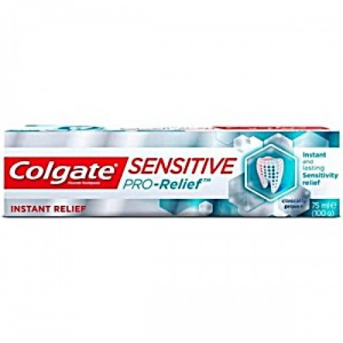 Colgate Sensitive Pro Relief is a specially formulated toothpaste designed to provide fast relief from tooth sensitivity. Its unique formula works by forming a protective layer over exposed nerves, instantly soothing discomfort and offering long-lasting protection from pain caused by hot, cold, sweet, or acidic foods. This toothpaste not only helps relieve sensitivity but also provides effective cavity protection, helping to maintain overall oral health.