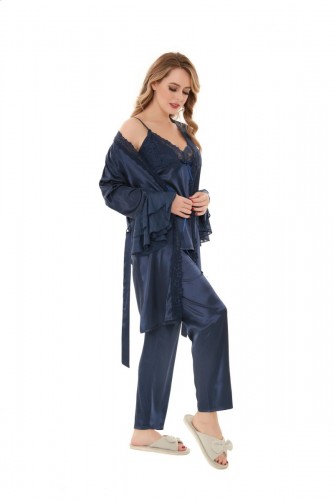 - 3-Piece Set: Includes a nightdress, robe, and matching inner slip.