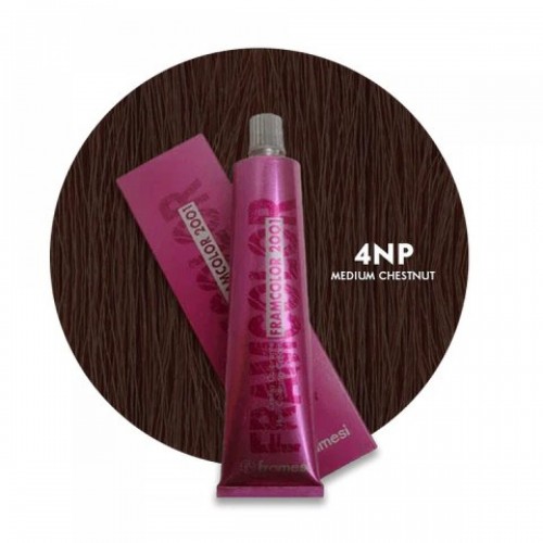 Framesi Framcolor 2001 Hair Color Cream 60ml - 4NP Medium Chestnut offers a radiant medium chestnut brown shade with natural warmth and depth. Designed for professional use, this permanent hair color provides exceptional gray coverage, vibrant results, and a nourishing formula that leaves hair soft, shiny, and healthy.