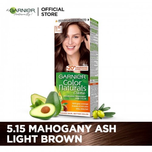 • Garnier Color Naturals is a permanent colour cream enriched with Olive oil, that nourishes the hair as it colours. • Your hair is deeply nourished, your colour is richer, more uniform and shinier. • The second ratio of olive oil in the conditioner is a real treatment for your hair. • Your hair is soft and your colour radiant. • And there is no grey hair.