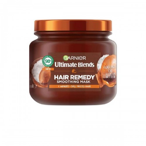 Garnier Ultimate Blends Coco Sleek Hair Remedy Mask is a nourishing treatment designed to smooth and hydrate unruly, frizzy hair. In a 340ml jar, this mask is enriched with coconut oil and cocoa butter, which work together to deeply moisturize and restore the natural softness and shine of your hair. It helps to tame frizz, enhance manageability, and protect against dryness, leaving your hair feeling smooth, silky, and frizz-free. Ideal for dry or frizzy hair, this mask provides long-lasting hydration and smoothness, making it perfect for regular use to keep your hair looking sleek and healthy.