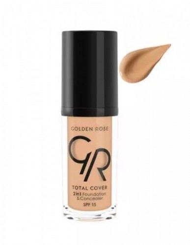 Golden Rose Total Cover 2in1 Foundation & Concealer in shade 12 Light Beige is a versatile, full-coverage product designed to create a flawless, smooth complexion. This 2-in-1 formula acts as both a foundation and concealer, providing long-lasting coverage while concealing imperfections and uneven skin tone.