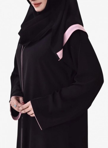 The Hijab Ul Hareem - Pipin Style Black Abaya 0116-R offers the perfect blend of modern detailing and timeless elegance, making it a must-have addition to your modest wardrobe.