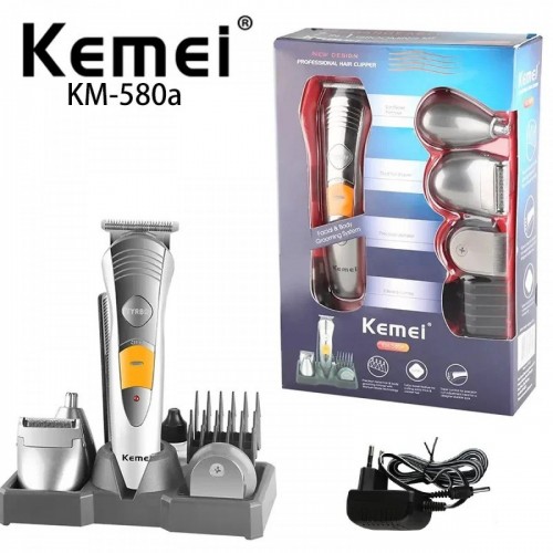 The Kemei KM-580A 7-in-1 Professional Hair Trimmer is the ultimate grooming solution, offering seven different attachments for all your trimming and grooming needs. This versatile trimmer includes options for hair, beard, mustache, and body grooming, making it an all-in-one tool for a polished look. Powered by durable, sharp stainless steel blades, it ensures precise and efficient trimming. The ergonomic design provides a comfortable grip, making it easy to maneuver. With rechargeable convenience, this trimmer delivers long-lasting power, perfect for professional-quality grooming at home or on the go.