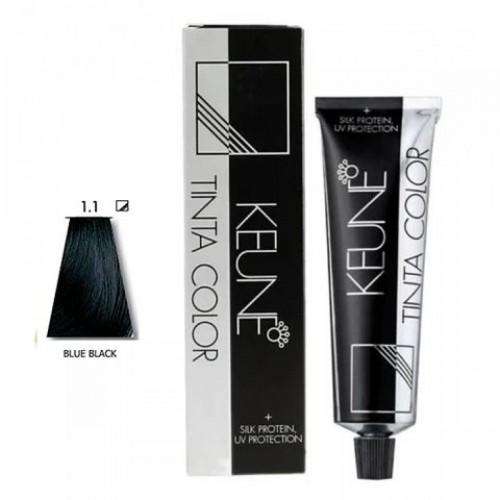 Keune Tinta Color 1.1 - Blue Black (60ml) is a deep, intense black shade with a cool blue undertone. This color offers a bold and dramatic look, perfect for those seeking a rich, jet-black hue with a hint of coolness.