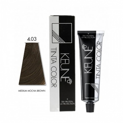 Keune Tinta Color 4.03 - Medium Mocha Brown (60ml) is a luxurious brown shade with a beautiful blend of neutral and warm undertones, creating a sophisticated mocha color. This shade combines the richness of medium brown with soft, creamy undertones for a deep and refined look.