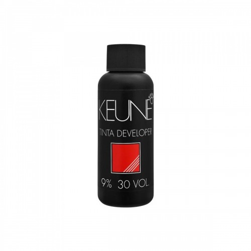 Mix Keune Tinta Developer 9% Vol (30 Vol) with Keune Tinta Color in the recommended ratio (typically 1:1 or 1:1.5).