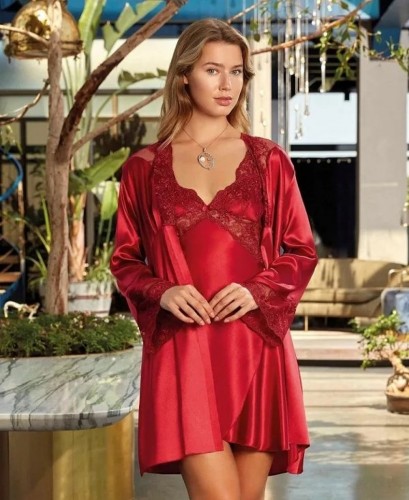 The Nurteks Intimo Donna 5344 Nighty Set in Red combines luxury and charm, making it an essential addition to any intimatewear collection.