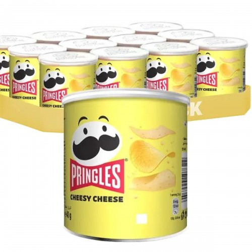 Packaging: Pringles signature resealable tube—designed to keep chips fresh and make snacking convenient at home, work, or on the go.