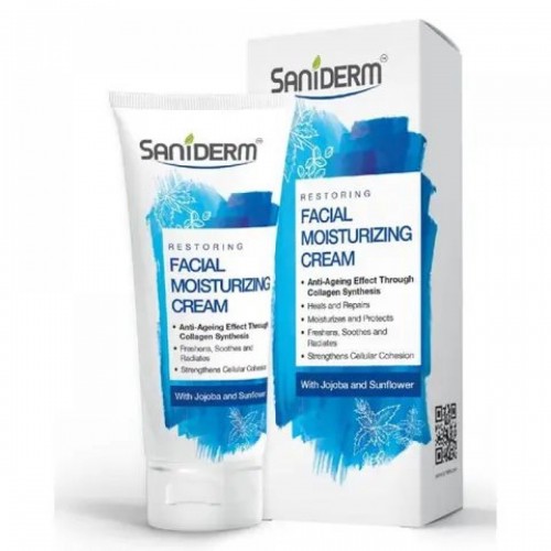 Saniderm Facial Moisturizing Cream (50g) is a lightweight and nourishing cream designed to provide hydration and maintain the skin's moisture balance. It is ideal for dry and sensitive skin, offering daily moisture without being greasy or heavy.