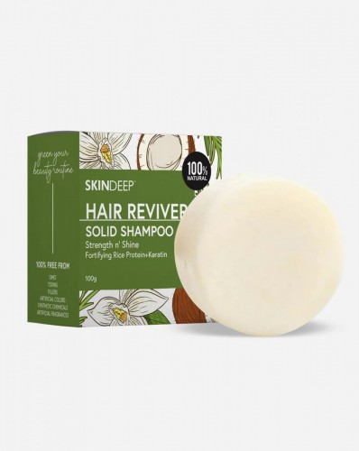 Skin Deep Hair Reviver Solid Shampoo is a sustainable, eco-friendly shampoo bar designed to gently cleanse, nourish, and revitalize your hair. Packed with natural ingredients, this solid shampoo provides essential moisture while helping to restore balance and shine. Ideal for all hair types, it effectively removes impurities without stripping the hair’s natural oils, leaving your hair feeling fresh, smooth, and revitalized.
