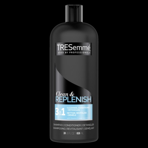 TRESemmé Cleanse and Replenish 3-in-1 Shampoo and Conditioner 828ml (UK) is a convenient solution for hair care, combining both shampoo and conditioner in one product. This formula is enriched with vitamin C and aloe, effectively cleansing and replenishing moisture in your hair. It leaves your hair feeling refreshed, nourished, and balanced, with enhanced softness and shine. Ideal for daily use, this 2-in-1 product is perfect for those who want to save time without compromising on quality, giving you salon-quality results at home.