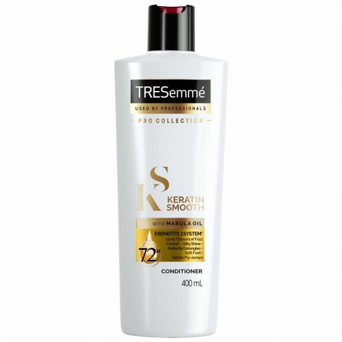 TRESemmé Keratin Smooth Conditioner 400ml (UAE) is expertly crafted to deliver smooth, frizz-free hair with a silky shine. Infused with keratin and Moroccan argan oil, this conditioner deeply nourishes and strengthens each strand, reducing frizz and enhancing manageability. It works to detangle hair effortlessly, leaving it smooth, soft, and beautifully sleek. Ideal for all hair types, including color-treated hair, this conditioner provides long-lasting smoothness and salon-quality results with every use.