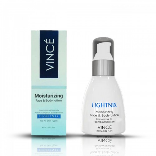 The Vince Moisturizing Face & Body Lotion Lightnix (80ml) is a dual-purpose lotion designed to hydrate and brighten both the face and body. Infused with skin-loving ingredients, this lotion helps to moisturize deeply while promoting a more even skin tone, leaving the skin soft, smooth, and radiant.
